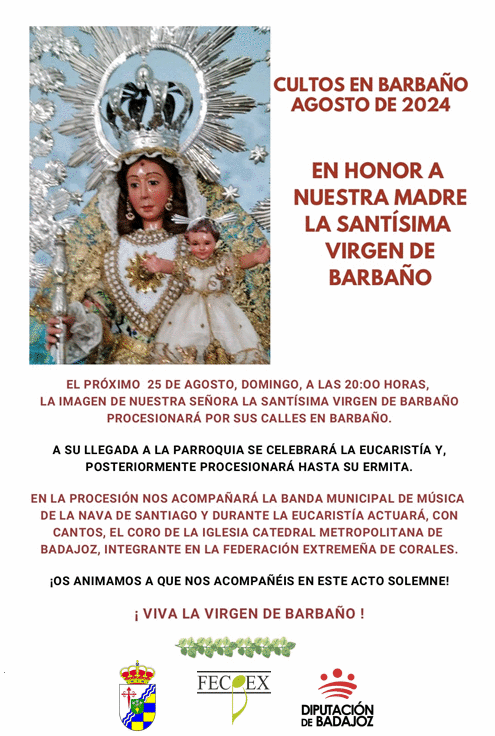 El domingo, 25 de agosto en celebración del culto a la Virgen de Barbaño será acompañada en procesión por la Banda Municipal de Música de la Nava de Santiago y durante la eucaristía actuará el Coro de la Iglesia de la Catedral Metropolitana de Badajoz, integrante de la Federación Extremeña de Corales (FECOEX).