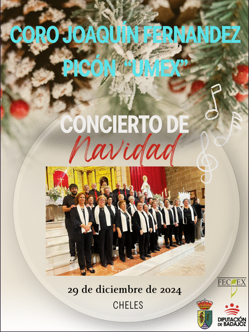 El 29 de diciembre de 2024 se celebrará en Cheles el Concierto de Navidad Coro Joaquín Fernández Picón UMEX.