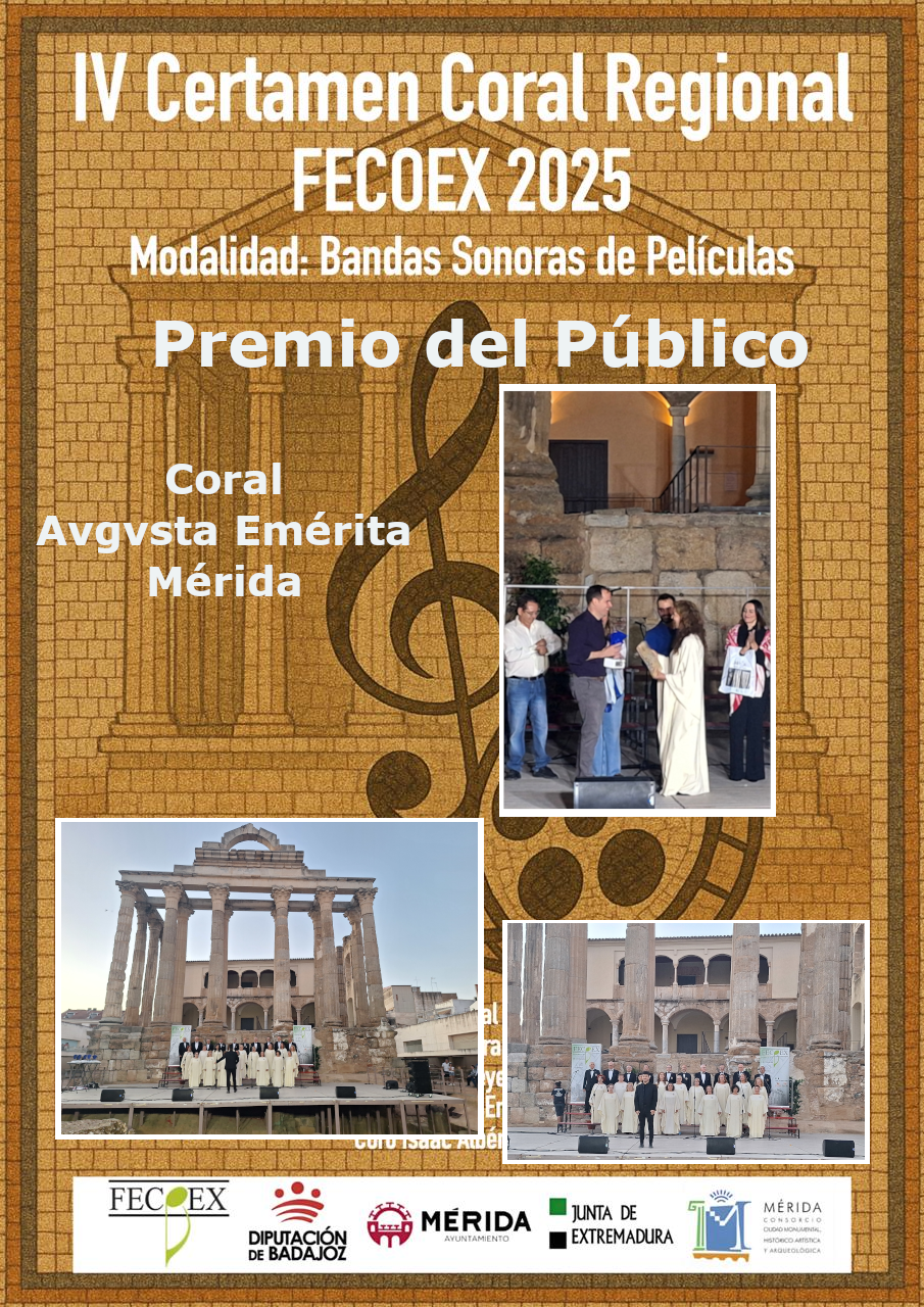 El evento, organizado por la Federación Extremeña de Corales, contó con el patrocinio de la Junta de Extremadura y Diputación de Badajoz, y la colaboración del Ayuntamiento de Mérida y el Consorcio de la Ciudad Monumental Histórico-Artística y Arqueológica de Mérida.
