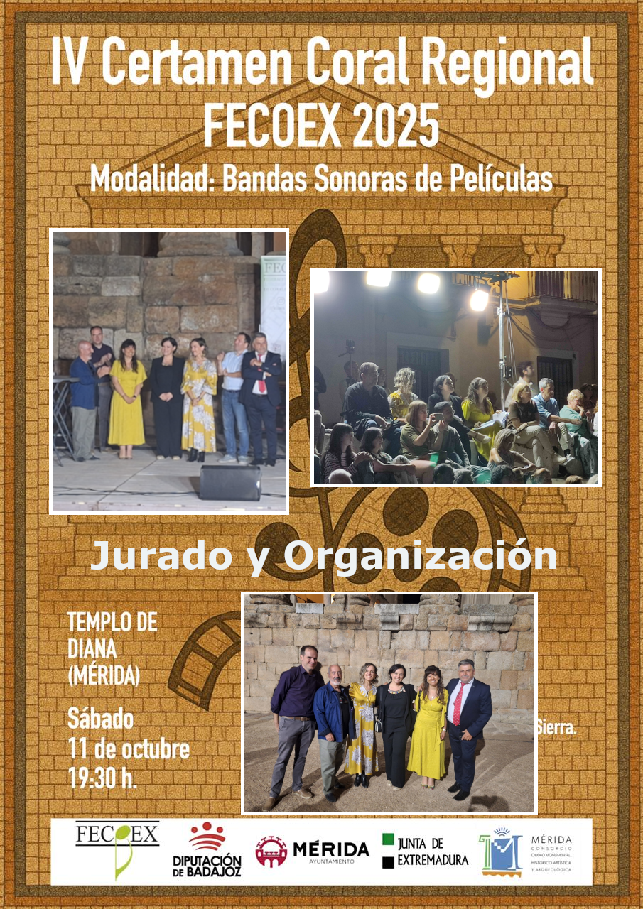 El pasado sábado 11 de octubre tuvo lugar, en en el incomparable marco del templo de Diana, en Mérida, el IV Certamen Coral Regional FECEOX 2025, en la modalidad de Bandas Sonoras.